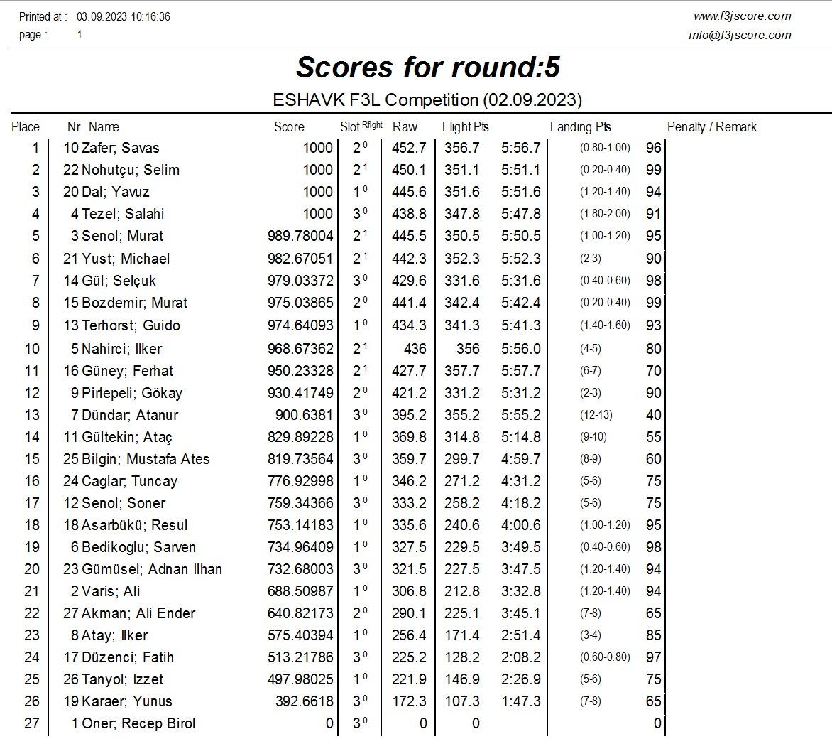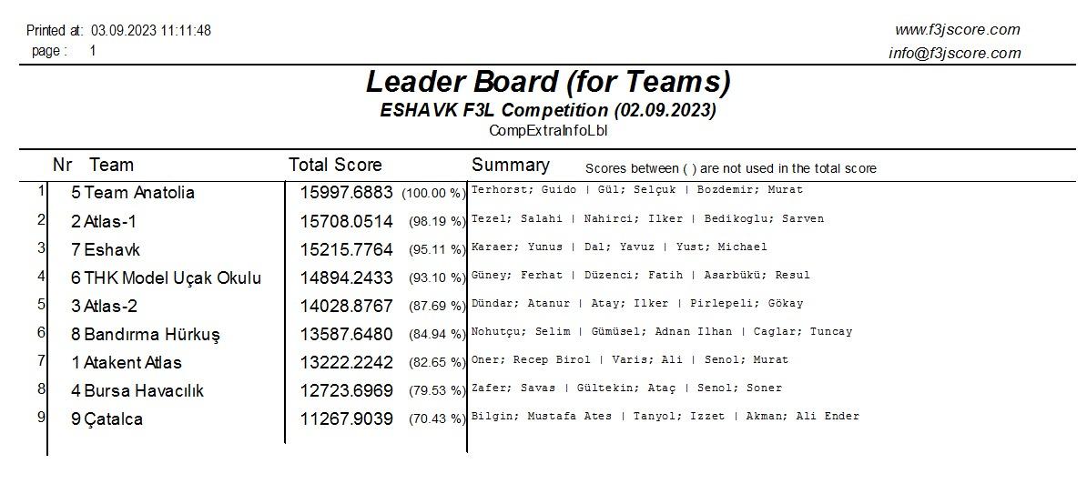 "Eshavk 2 Meter Glider F3L International Cup" competition, organized in collaboration with the Eskişehir Aviation Club (Eshavk) and the Turkish Aeronautical Association (THK), took place on September 2-3, 2023, in İnönü, Eskişehir, Turkey, with the participation of 27 pilots.